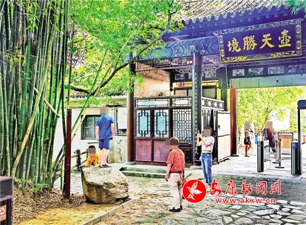 暑假期間,8月2日,在香溪洞景區(qū)內(nèi),一小孩站在景觀石上照相,旁邊的工作人員勸阻無(wú)效。