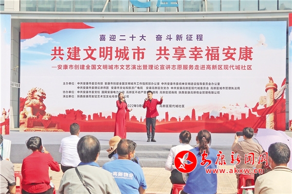9月9日,一場以“共建文明城市,共享幸福安康”為主題的文藝演出和理論宣講活動在高新現(xiàn)代城社區(qū)舉行。整場活動,除了有群眾喜聞樂見的文藝節(jié)目,還設置有創(chuàng)建知識問答互動和創(chuàng)文知識專題宣講。現(xiàn)場,志愿者們還熱情地向群眾發(fā)放印有創(chuàng)文內(nèi)容的宣傳冊、涼扇、垃圾袋等,大家紛紛贊揚:“形式生動活潑,宣傳入腦入心!”