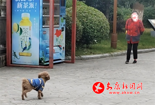 11月8日下午,興安公園小廣場(chǎng)內(nèi)有市民遛狗未牽繩,寵物犬綠地隨意便溺。(圖文/周薇)
