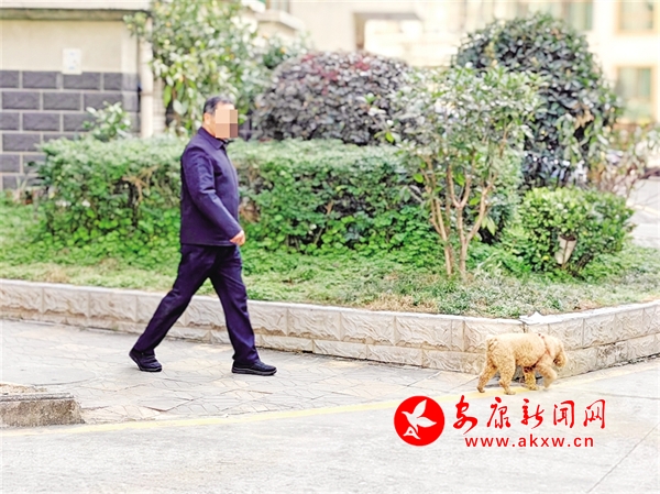 12月2日,有市民在某小區(qū)內(nèi)不牽繩遛狗。鄭時根 攝?