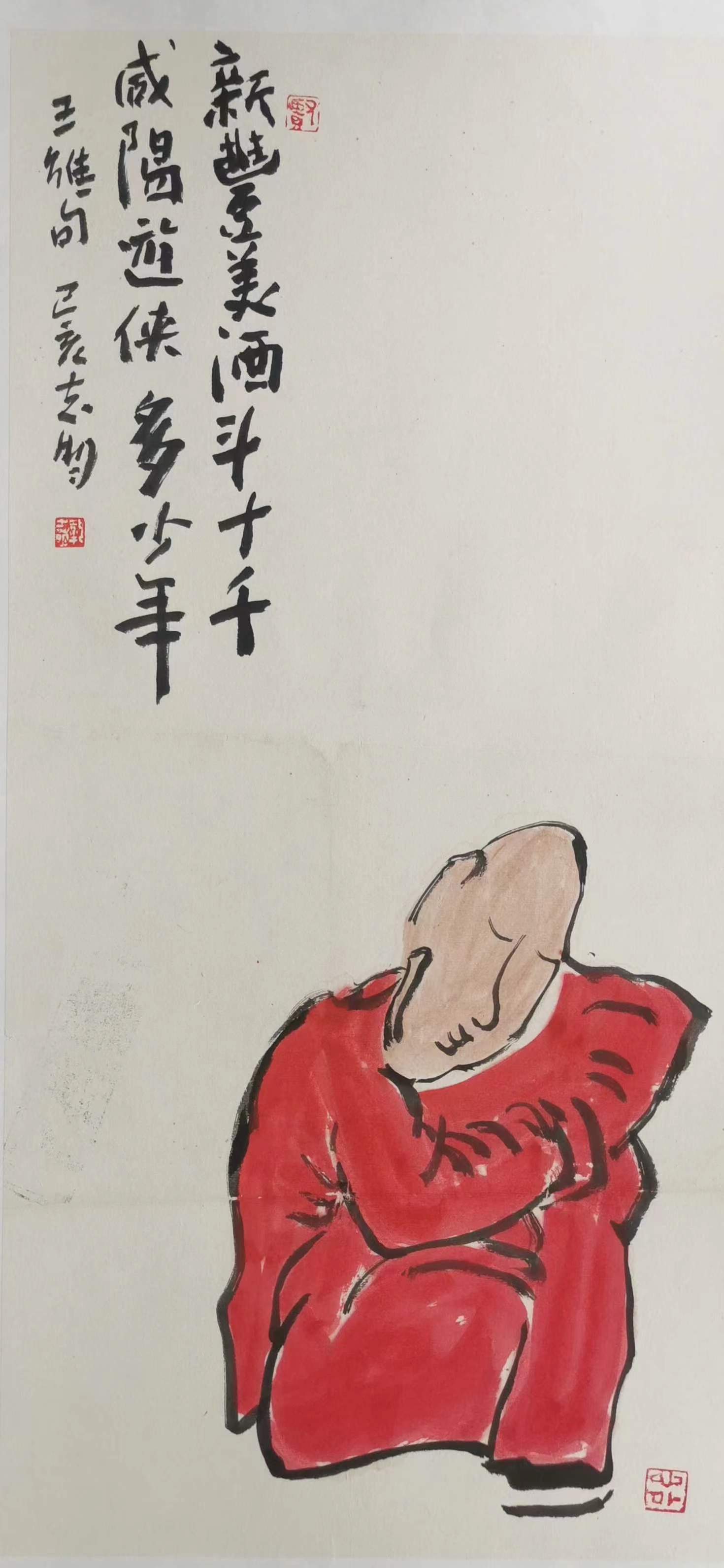 記得那一年的端午節(jié),鞏志明發(fā)來短信,是他寫的一首詩:綠粽黃酒聚江邊,白帆紅燭祭屈原。三千清淚流不得,九萬渾念飄上天。誰有郁悶誰散淡,何謂圓滑何忠奸。十丈風(fēng)塵古今在,談笑真?zhèn)位聼煛?017年,我遷新居,鞏老師為我寄來小品畫《福到眼前》,我很喜歡,并懸掛至新居玄關(guān)。這些年,鞏志明老師常做影展畫展策劃及影評講座,自已也臨池不輟,水墨丹青,寄情抒懷,他的文人小品有思想性、有創(chuàng)造性。雖畫的是松風(fēng)明月,小舟流水或遠(yuǎn)古人物,但都寄托了他當(dāng)下的心境,以消塊壘。誠如有人評論他為“吾師真文人,畫亦真性情!”他不僅只是身居畫室的怡情文人,他亦是心憂天下的豪俠。面對世間不平事,他也是激揚(yáng)文字,揮斥方遒!在功利的當(dāng)下,鞏志明尤其顯得難能可貴!?