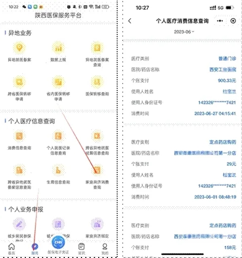 在“陜西醫(yī)保”APP“服務(wù)”界面,選擇家庭共濟(jì)消費查詢功能,授權(quán)者可查詢到使用者的家庭共濟(jì)消費情況。