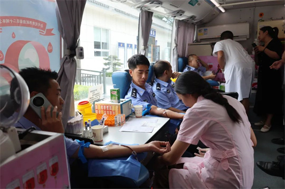 驕陽似火,愛心傳遞。參加此次獻血活動的民輔警表示,無償獻血是一種愛心奉獻,也是一種社會責任。能盡自己的微薄之力,為生命接力,是一次非常有意義的活動,今后工作中,他們將繼續(xù)積極投身到無償獻血志愿活動中來,用熱血傳遞愛心,用熱血踐行誓言,用熱血擔當使命。?