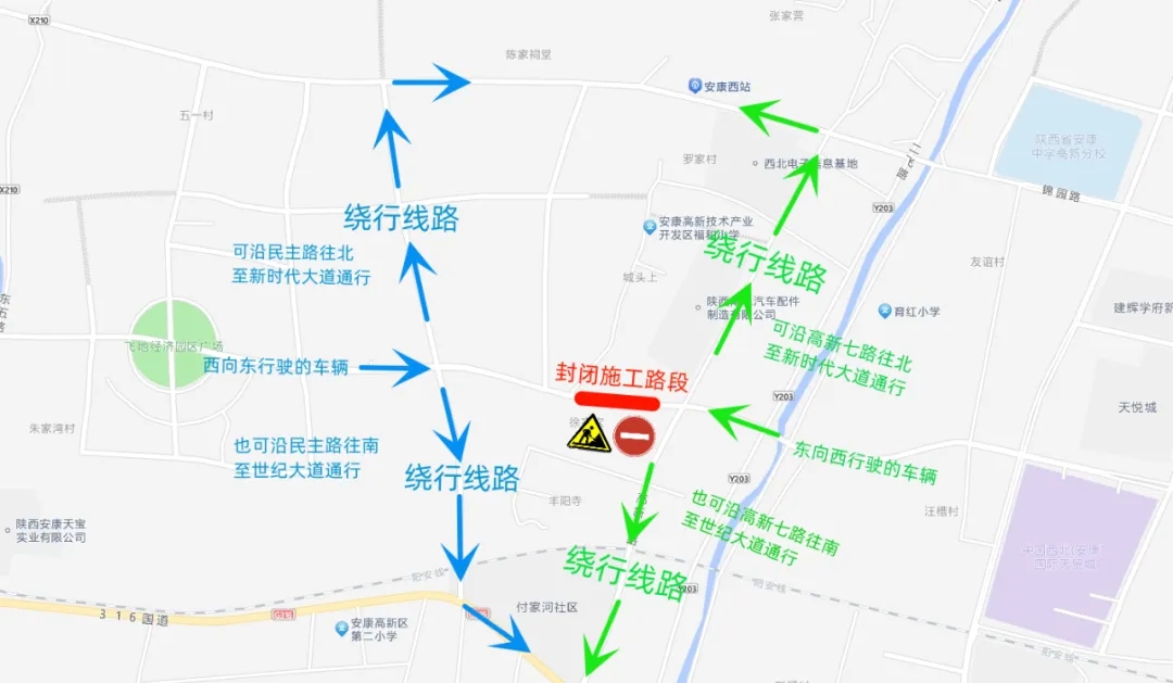 1.由高新區(qū)前往富強機場方向的車輛可沿世紀大道通行,或自創(chuàng)新路、高新七路至新時代大道繞行。