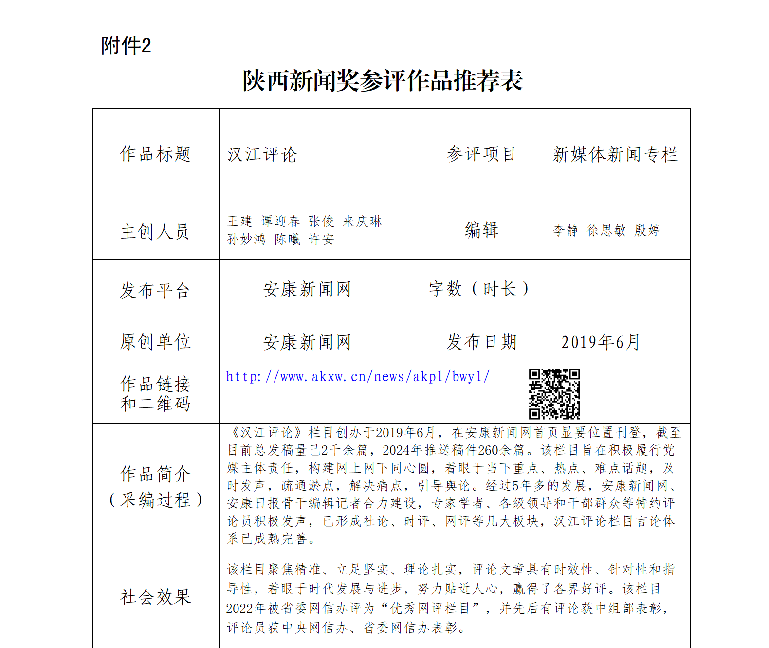 經(jīng)過社黨委研究決定,擬推薦以下2件新聞作品參評“2024年度陜西新聞獎融合報道、應(yīng)用創(chuàng)新和新媒體新聞專欄”。公示時間從2025年1月6日至2025年1月10日,公示期5個工作日。如有不同意見,請向安康日報社機關(guān)紀(jì)委、新聞管理部反映。