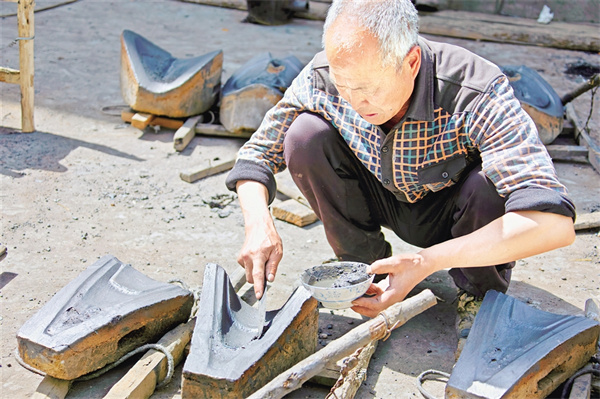 宋祖新的叔祖父是當(dāng)年鏵廠的“掌勺”師傅之一,在一次次觀看大人們操作中,他也學(xué)會了從制模到熔鐵澆鑄一整套鑄鏵技術(shù)。隨著農(nóng)業(yè)科技的發(fā)展,傳統(tǒng)的鐵鏵制作工藝逐漸被機(jī)械化生產(chǎn)所取代,但在陜南一些山區(qū)坡地仍延續(xù)著犁鏵耕作方式?!扒靶┠辏鄶?shù)人都選擇外出務(wù)工,種地的少,好多年沒有開爐鑄鏵了,很多年輕人都沒有親自體驗過制作過程,聽說我們這兒又開始鑄鏵,連縣城的人都趕來看稀奇!”宋祖新說。