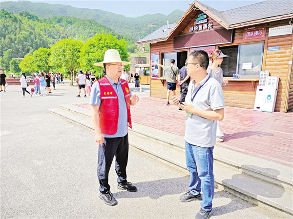 游客需要什么,黨員就做什么!今年“五一”期間,全鎮(zhèn)設(shè)立4個(gè)固定服務(wù)崗、30個(gè)流動(dòng)服務(wù)點(diǎn),配備2支摩托巡邏隊(duì)和200名志愿者,形成“點(diǎn)線面”結(jié)合的服務(wù)網(wǎng)絡(luò)。同時(shí)運(yùn)用“智慧監(jiān)管云平臺(tái)”,整合無(wú)人機(jī)巡查、AI人流監(jiān)測(cè)等技術(shù)手段,實(shí)現(xiàn)景區(qū)客流精準(zhǔn)調(diào)控,贏得了廣大游客的爭(zhēng)相稱贊。