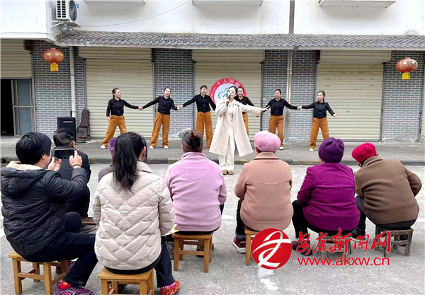 首場(chǎng)活動(dòng)在城關(guān)鎮(zhèn)湯坪社區(qū)拉開(kāi)帷幕。上午9點(diǎn),演出團(tuán)隊(duì)的小巴剛開(kāi)進(jìn)社區(qū)院子,志愿者們就迅速布置起臨時(shí)舞臺(tái)。隨著音樂(lè)聲響起,原本安靜的院子漸漸熱鬧起來(lái),居民們?nèi)齼蓛蓢鷶n過(guò)來(lái)。暖陽(yáng)下,志愿者早就擺好整齊的凳子,等候老人們?nèi)胱?/p>
