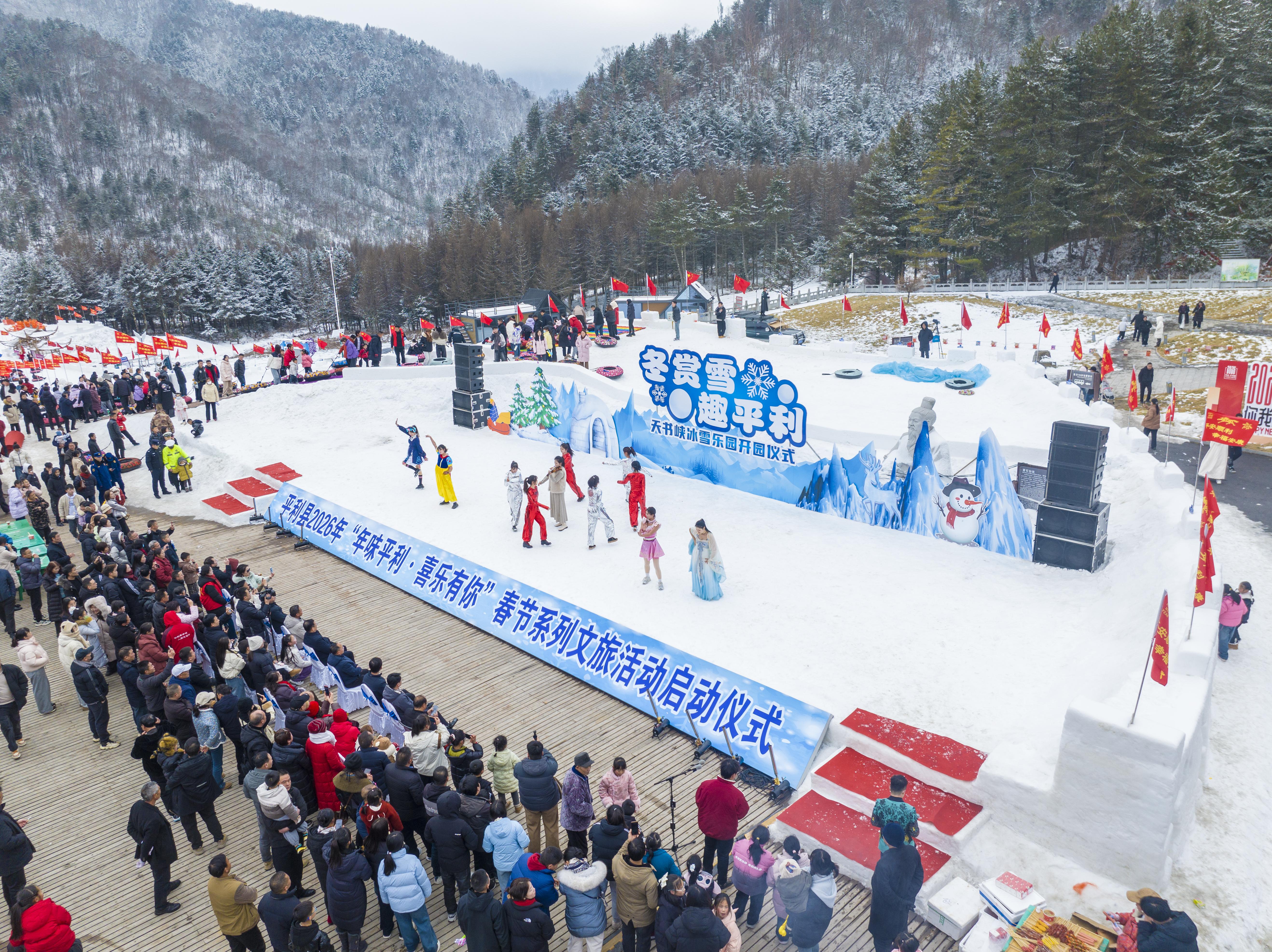 2月1日,“冬賞雪·趣平利”天書峽冰雪樂園暨2026年“年味平利·喜樂有你”春節(jié)系列文旅活動啟動儀式在八仙鎮(zhèn)天書峽景區(qū)舉辦。開園當(dāng)日,景區(qū)同步開放了冰雪游樂區(qū)、美食體驗(yàn)區(qū)與農(nóng)特產(chǎn)品展銷區(qū)。在農(nóng)特產(chǎn)品展銷區(qū)集中展示了高山蜂蜜、手工芝麻糖、八仙臘肉等縣域優(yōu)質(zhì)農(nóng)產(chǎn)品,讓游客在游玩的同時,還能把“平利味道”帶回家。