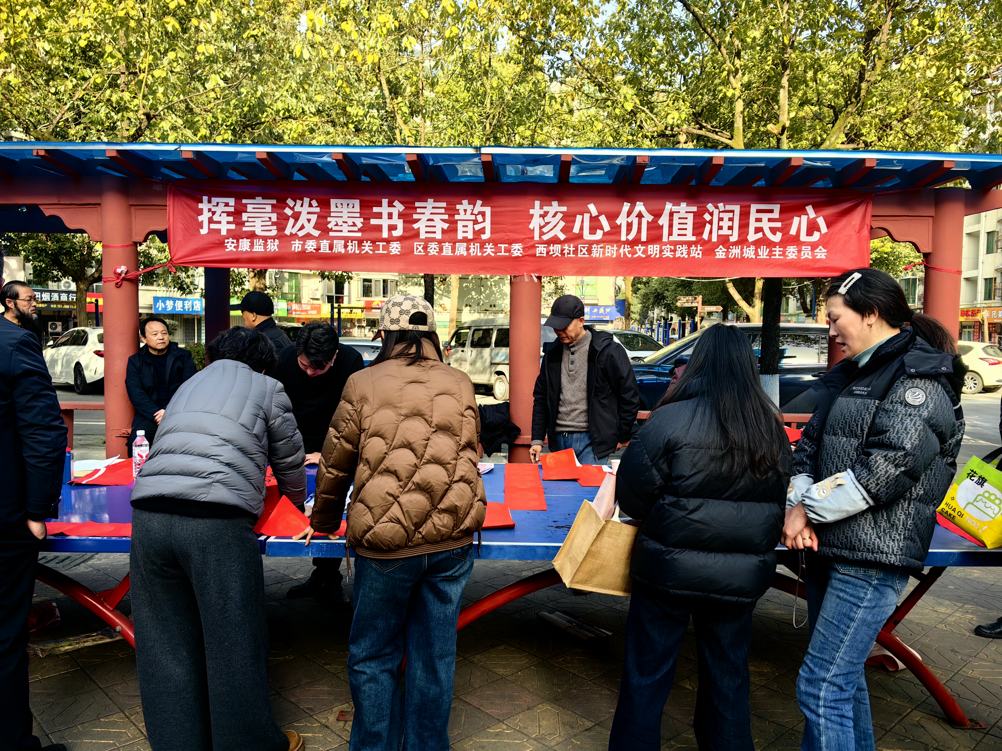 2月2日下午,安康監(jiān)獄、市委直屬機關(guān)工委、區(qū)委直屬機關(guān)工委、漢濱區(qū)西壩社區(qū)新時代文明實踐站組織市區(qū)書法家在金洲城小區(qū)為群眾義寫春聯(lián)。 鄭時根 攝