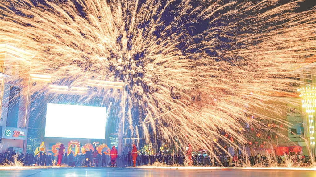 寧陜縣中心廣場打鐵花表演 楊穩(wěn) 攝