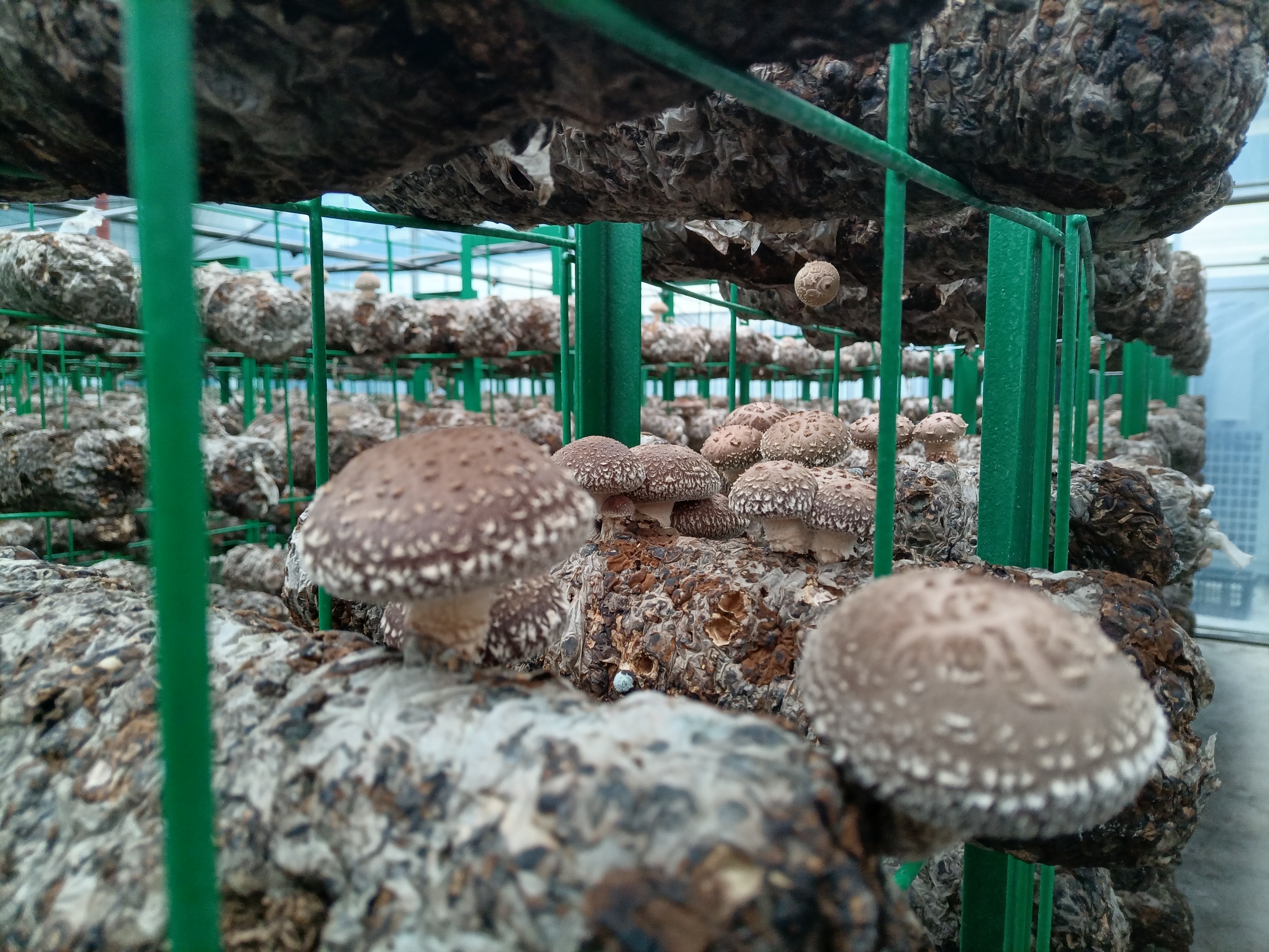 △ 喜河鎮(zhèn)晨光村食用菌標準廠房內(nèi)香菇長勢喜人